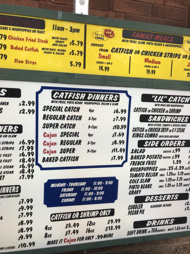 Welcome to the Catfish King Restaurant of Paris, where seafood lovers find their paradise. Nestled at 2430 N Main St, this vibrant eatery specializes in delivering fresh, flavorful dishes that keep patrons returning for more. The menu shines with perfectly fried catfish that’s crispy outside and tender inside, ensuring no fishy aftertaste. Guests rave about the hand-battered onion rings, calling them the best in town, along with delicious hush puppies and satisfying sides like coleslaw and beans.